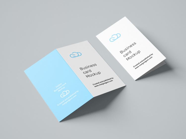 图穷联素材库 » 折叠样式名片设计贴图展示样机PSD模版 Folded business card mockup / 90x50 mm