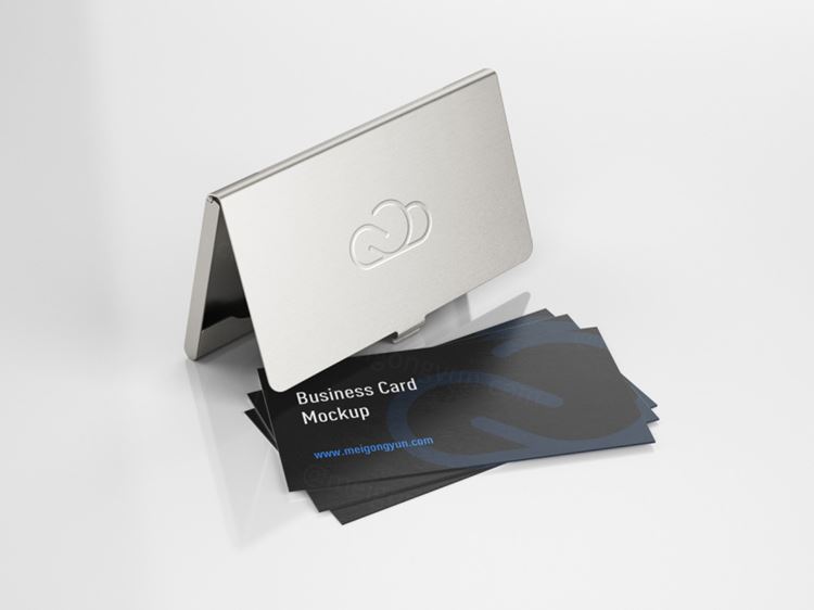 图穷联素材库 » 金属铝合金名片盒子设计品牌提案样机PSD模板素材 Business card holder mockup