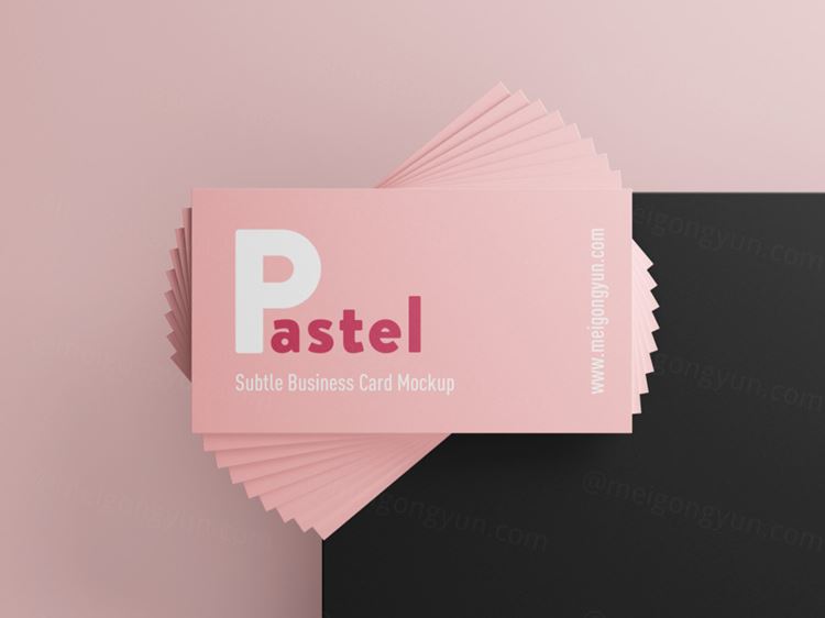 图穷联素材库 » 女性粉色系小清新名片设计提案样机PSD模板素材 Pastel business cards mockup