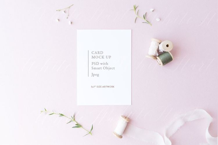 图穷联素材库 » 粉红卡片样机模板card mock up on pink background