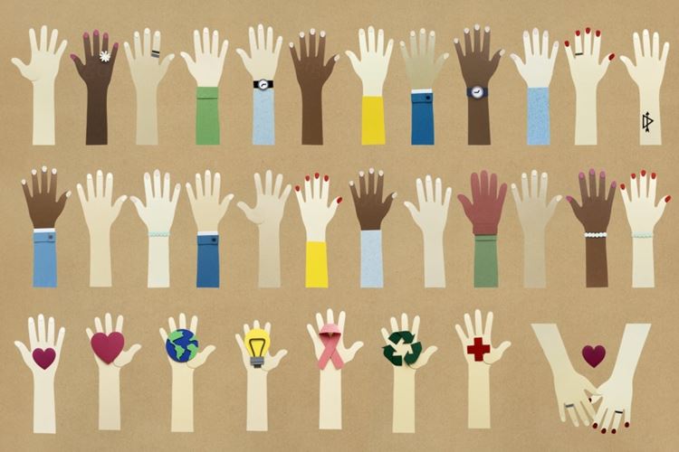 不同人物肤色的手工剪纸风格手VI样机paper-craft-of-diverse