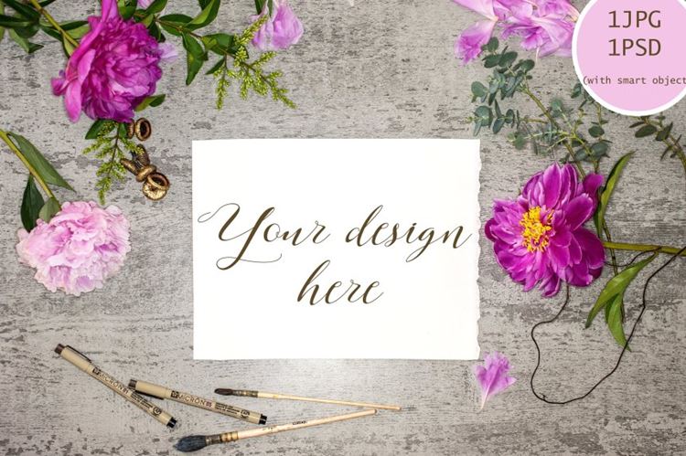 图穷联素材库 » 粉色月季牡丹样机模型 Pink peony mock up