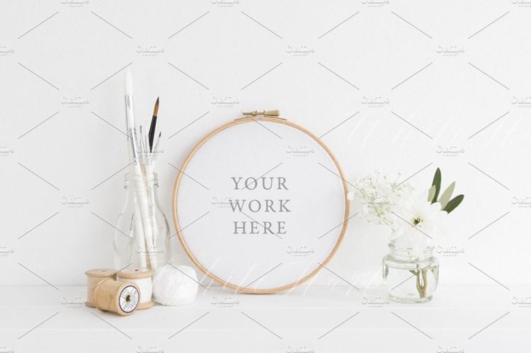现代的圆形画框样机 Modern embroidery hoop mockup