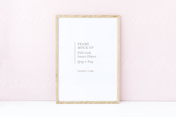 极简主义木质画框样机 Minimal wooden frame on pink bgd