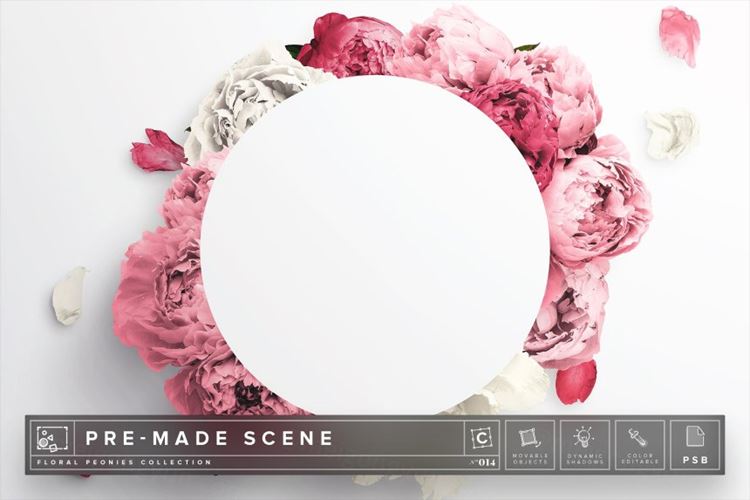 卉边框的banner设计素材 Floral Peonies Mockup Scene