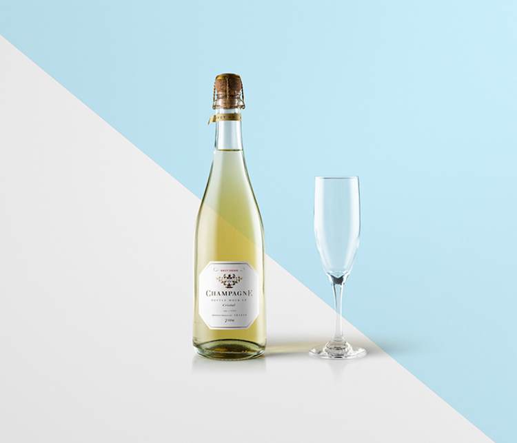 图穷联素材库 » 蓝白色简洁风格香槟杯样机贴图展示模板