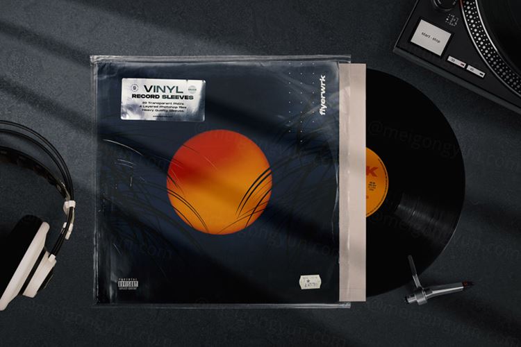 图穷联素材库 » 高端复古黑胶唱片透明塑料膜塑封包装袋场景模拟01