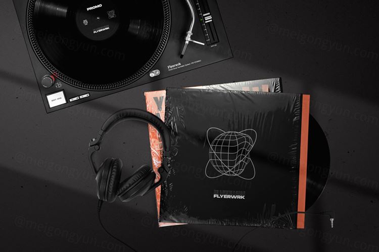 图穷联素材库 » 高端复古黑胶唱片透明塑料膜塑封包装袋场景模拟03