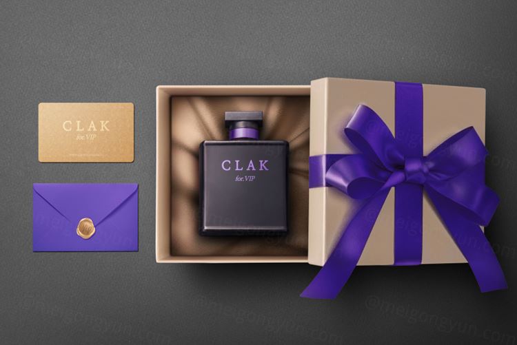 图穷联素材库 » 精美的香水礼品包装VIP套件场景样机