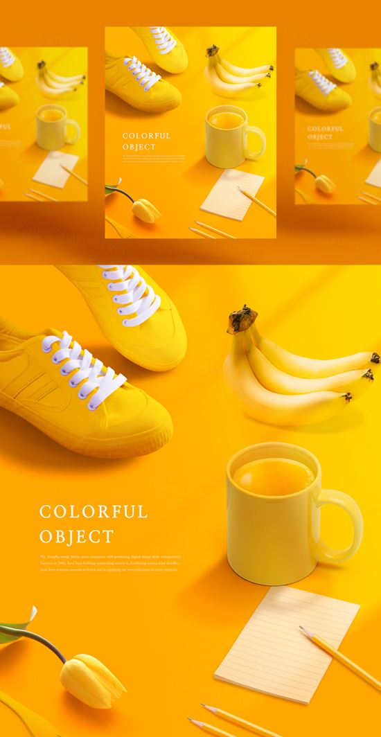 图穷联素材库 » 黄色香蕉色VI品牌鞋子套装设计展示样机