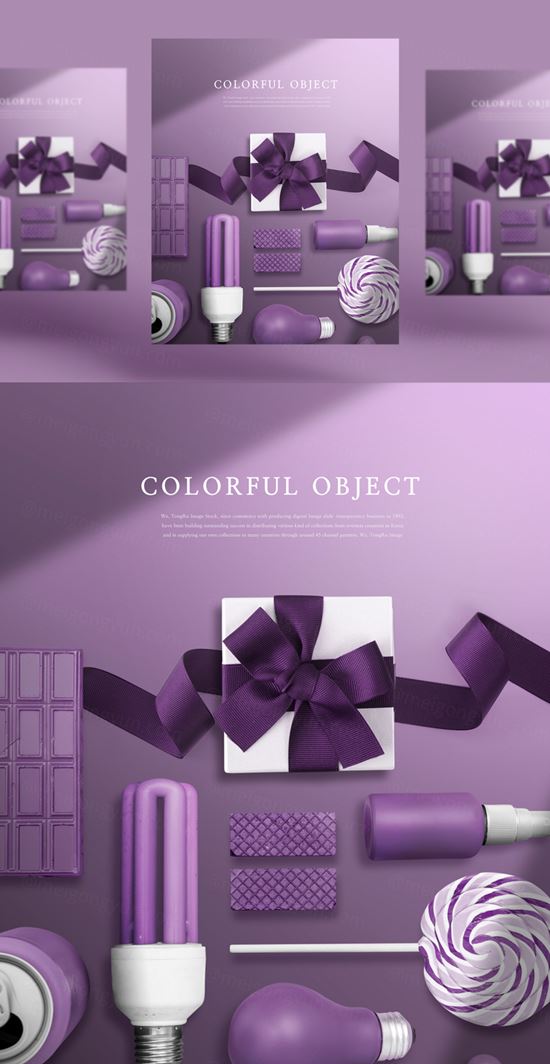 图穷联素材库 » 紫色VI品牌灯泡套装设计展示样机