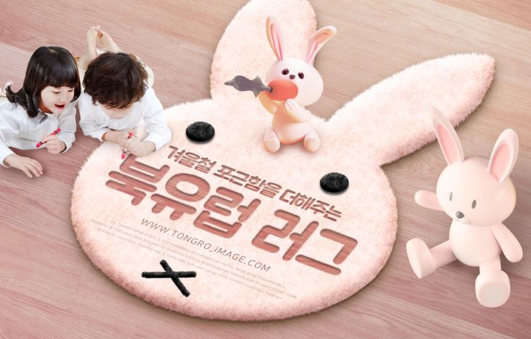 图穷联素材库 » 可爱毛绒兔子儿童地毯场景模拟