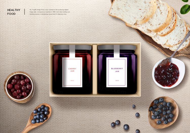 草莓蓝莓果酱罐装礼盒场景贴图样机