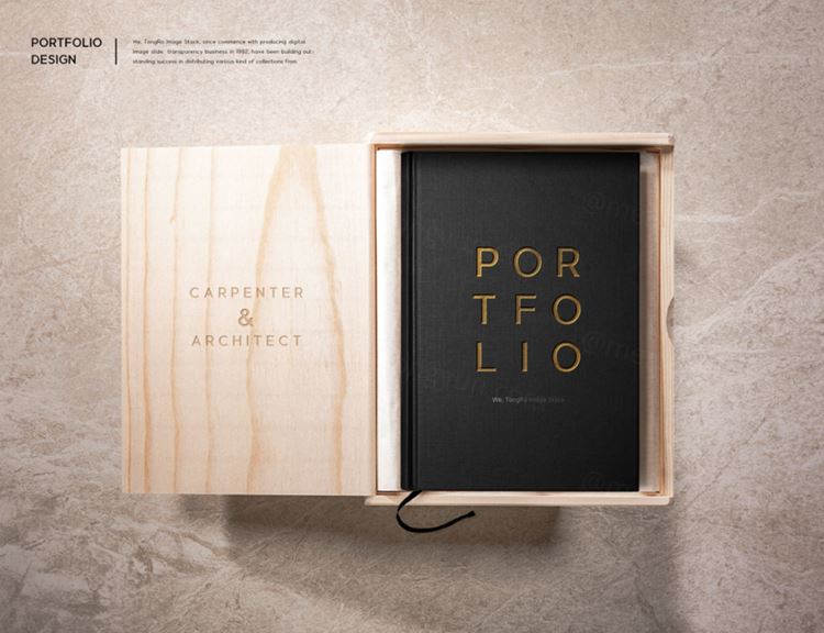 图穷联素材库 » 木盒封装纪念册相册高档包装礼盒样机