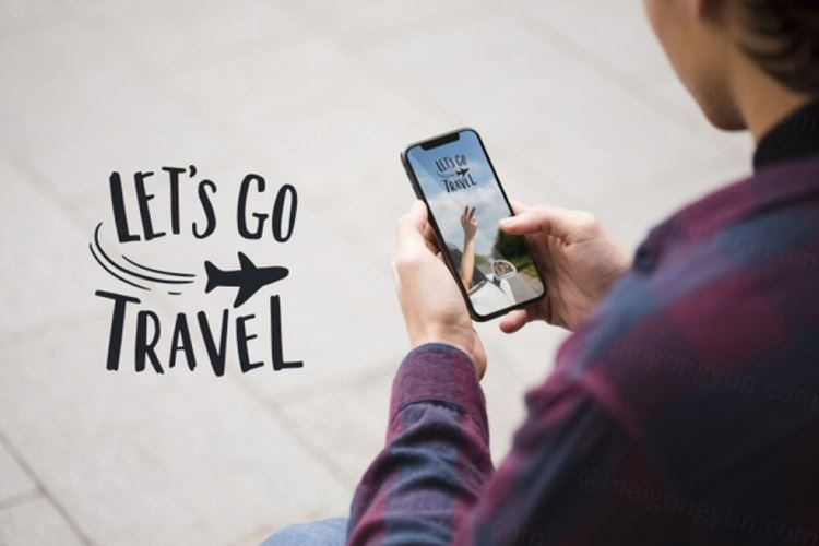 图穷联素材库 » 手持iphone手机展示样机 Let’s go travel and man looking