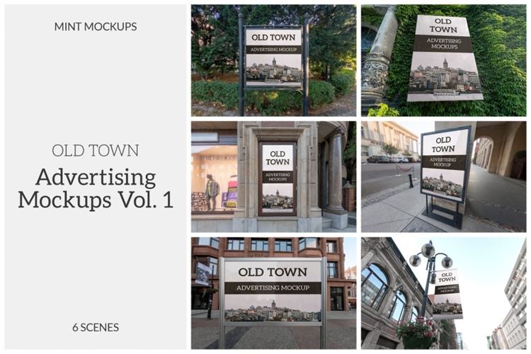 时尚高端优雅质感的欧式复古风格户外广告灯箱广告路旗海报设计VI样机展示模型