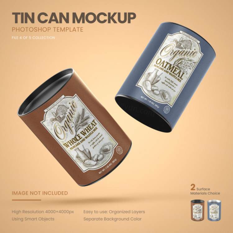 两个中等大小的锡罐传单样机