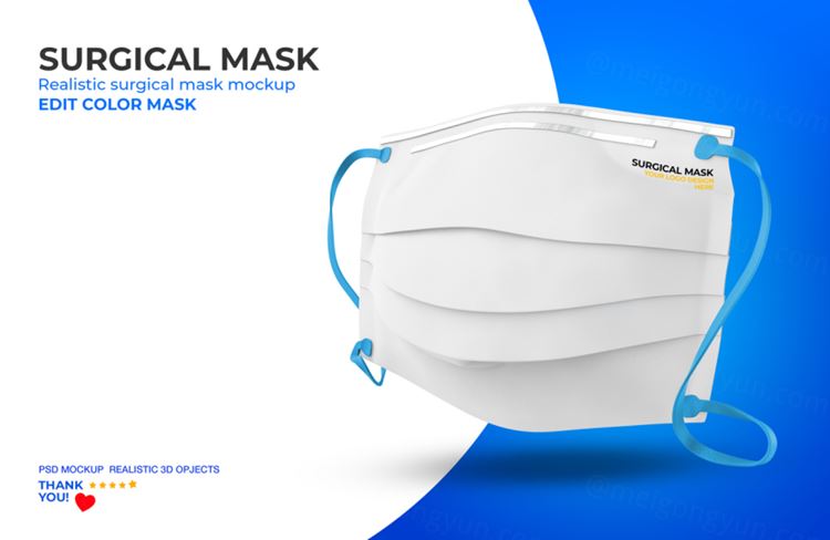 图穷联素材库 » 医用级口罩样机PSD模板素材 Surgical mask mockup