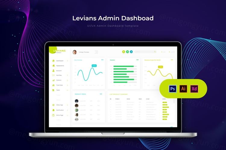 图穷联素材库 » 专业的后台仪表盘管理UI模板(AI,PSD,XD)