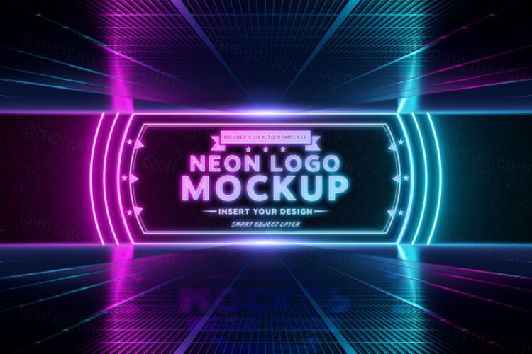 图穷联素材库 » 炫酷的粉红色的蓝色霓虹灯logo样机