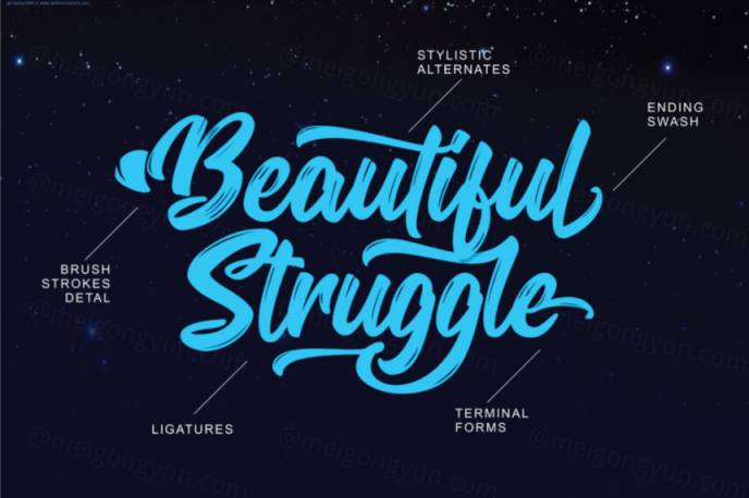 Oraqle Script有许多变化和额外的秋千。它有大写,小写,数字,标点和多语言字符,还包括一些开放式功能,如连接,风格交替字符,和斜杠。