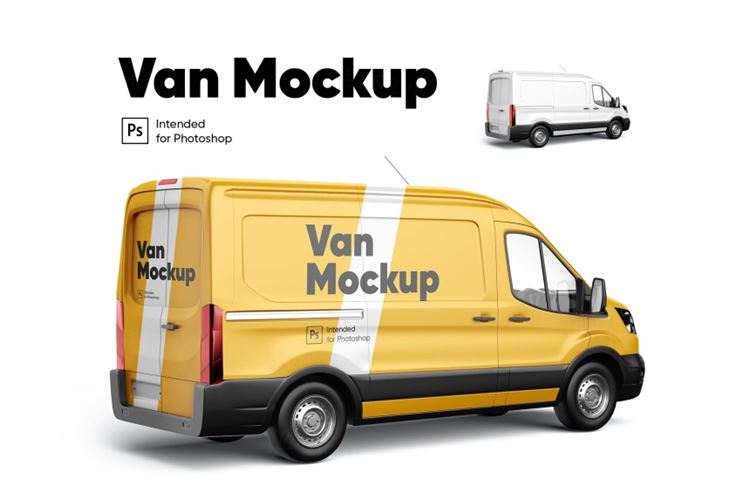 图穷联素材库 » 快递物流服务的面包车车身设计展示样机(PSD)