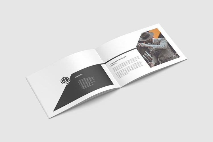 图穷联素材库 » 打开的 A4 尺寸横版画册设计展示样机(PSD)