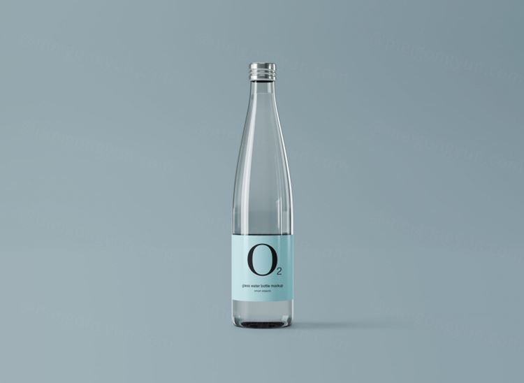 极简设计风格玻璃纯净水矿泉水瓶外观设计图样机 Minimal Glass Water Bottle Mockup