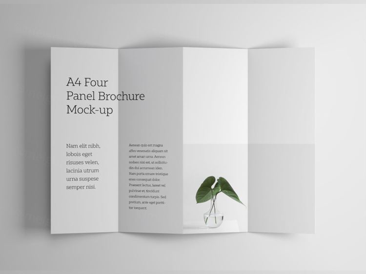 图穷联素材库 » 横版设计折页宣传单效果图样机 A4 Four Panel Brochure Mockup