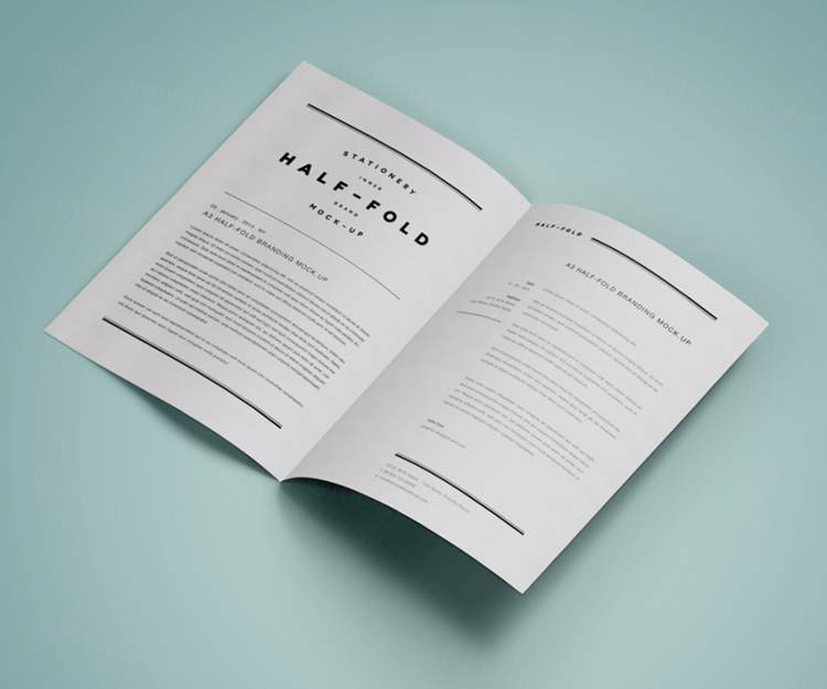 图穷联素材库 » 极简主义A4规格三折页样机 Psd A3 Half Fold Mock-Up