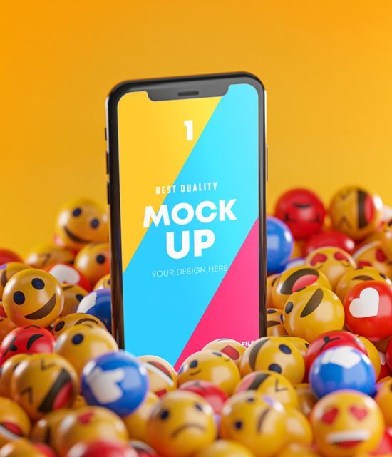 图穷联素材库 » 智能手机3D立体表情符号场景UI提案样机PSD模板 Smartphone Emoji Mockup Pack