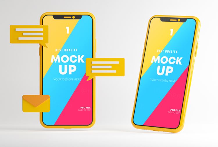 信息对话框3D场景即时通话APP UI提案样机PSD模板 Messaging Conversation App Mockup