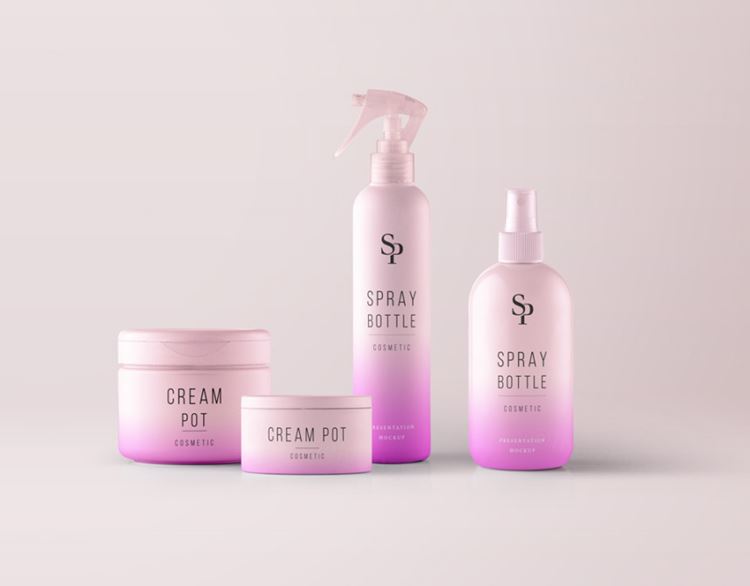 喷雾瓶和奶油罐包装样机 Psd Cosmetic Packaging Mockup Vol2