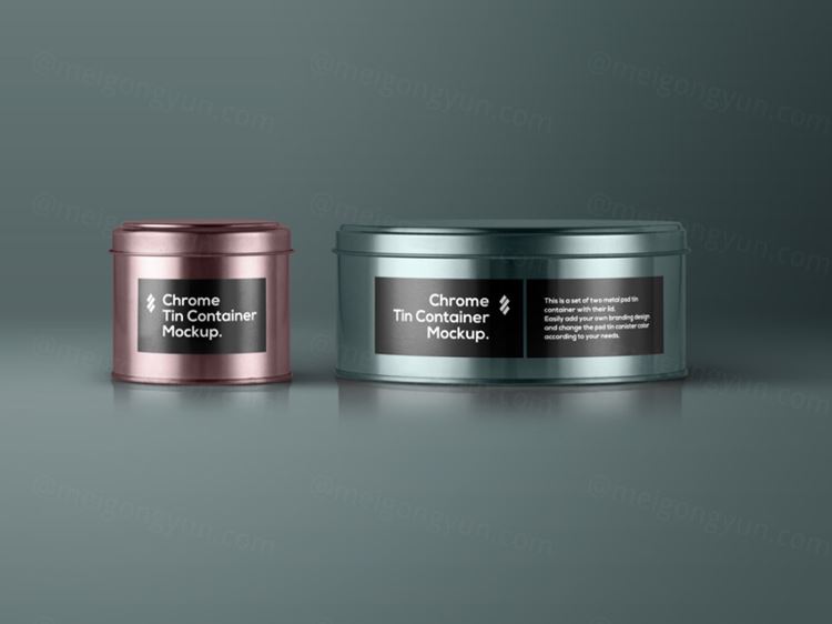 带有盖的psd锡容器套装的闪亮金属样机 Psd Tin Container Packaging Vol3