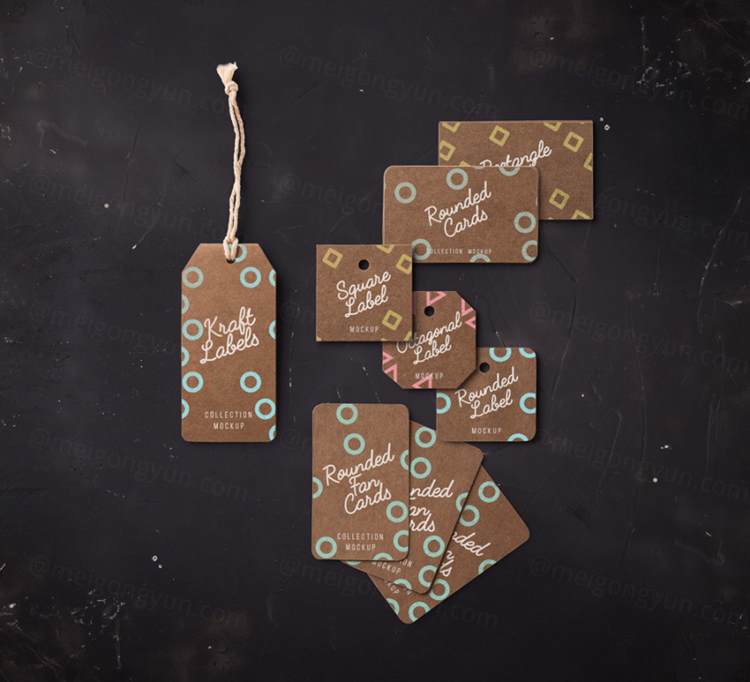 图穷联素材库 » 棕色纸板样式的不同尺寸和形状的纸psd牛皮纸标签 Psd Kraft Label Cards