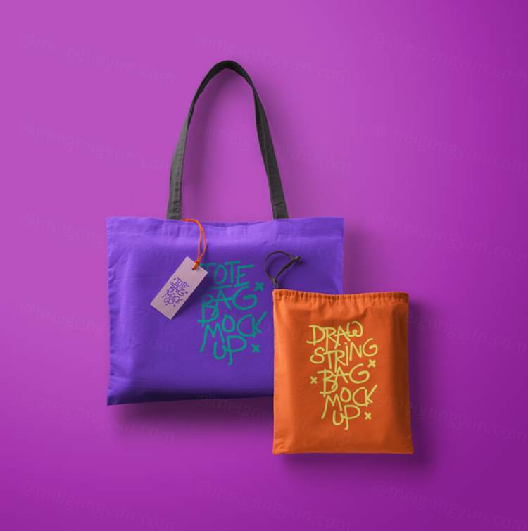 图穷联素材库 » 手提袋抽绳样机 Psd Tote Bag Drawstring Mockup