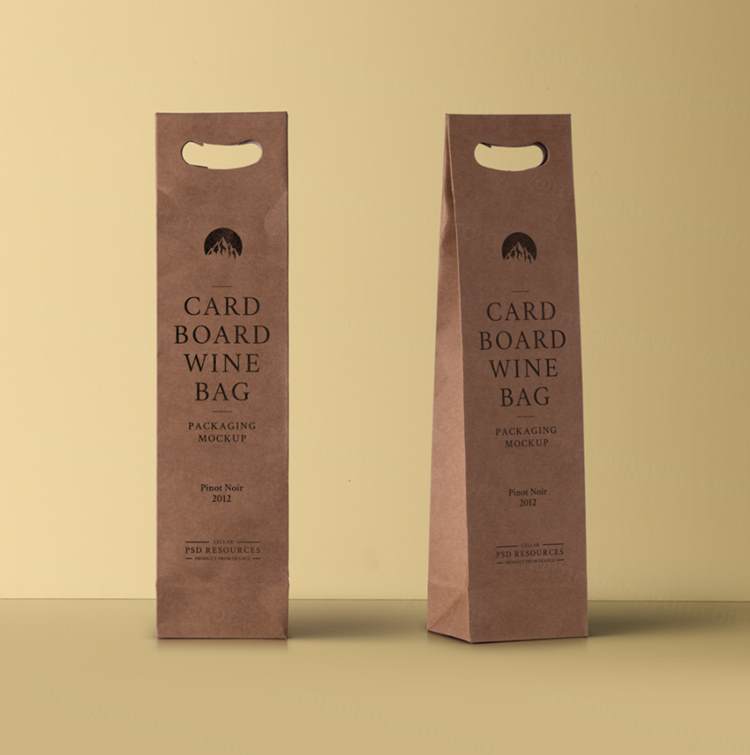 红酒牛皮纸袋包装样机 Wine Psd Cardboard Bag