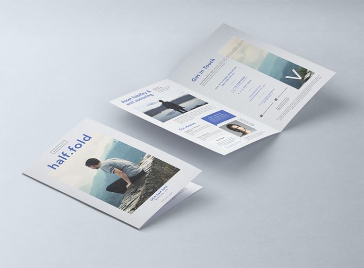 图穷联素材库 » 经典对折页设计个人工作室宣传画册样机 Half Fold Psd 8-5x11 Inch Mockup