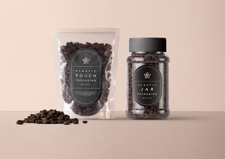 塑料咖啡包装样机 Plastic Coffee Packaging Mockup