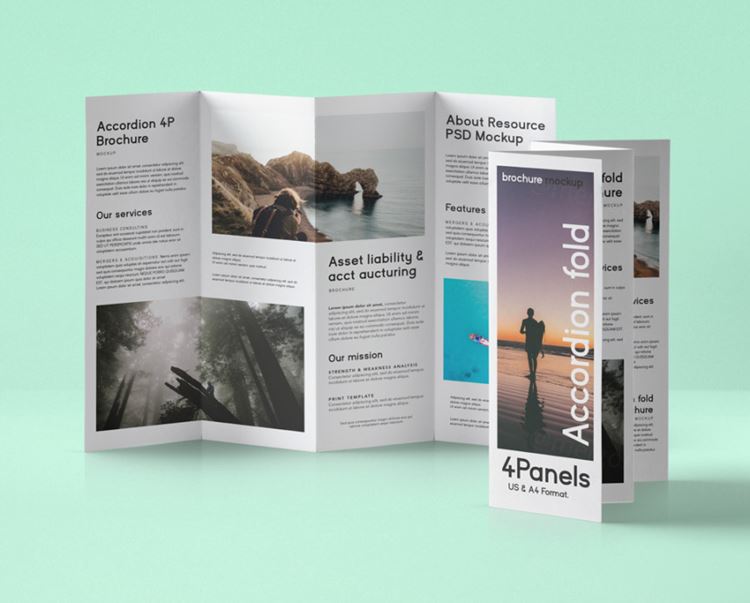 图穷联素材库 » 手风琴折叠手册样机模板 Psd Accordion Fold Mockup US A4