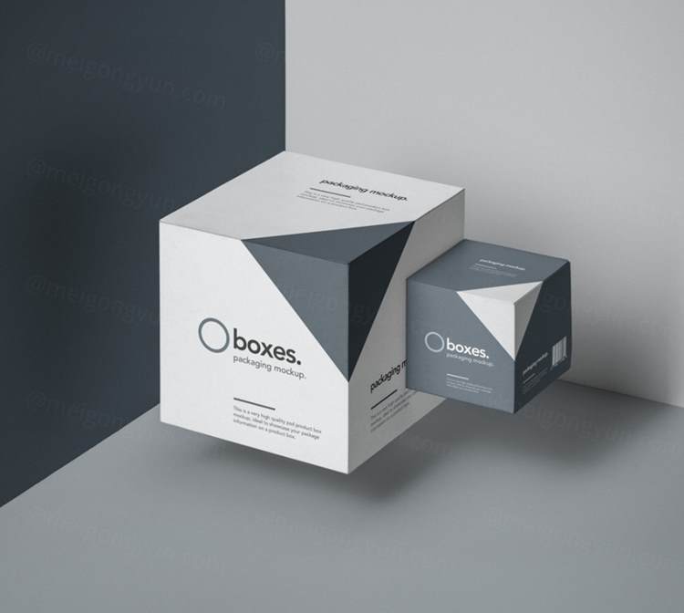 重力场景中的方形包装psd盒子样机 Gravity Square Psd Box Mockup