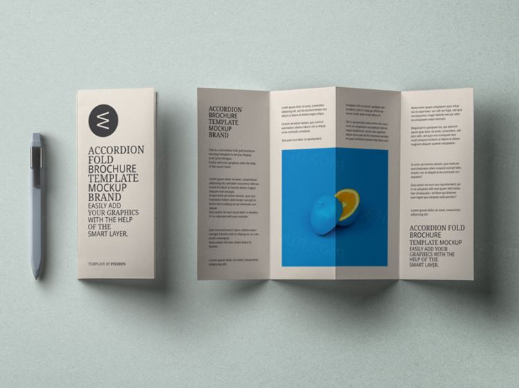 图穷联素材库 » 手风琴折叠手册样机模板 Psd Accordion Fold Mockup US A4 v2