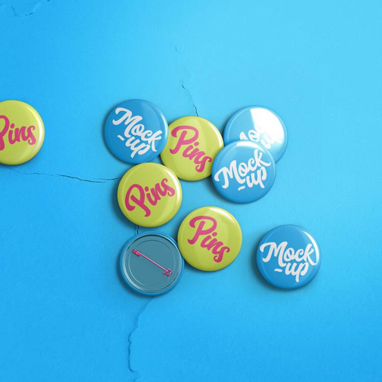 图穷联素材库 » 圆形徽章样机模板 Psd Pin Badge Mockup Template