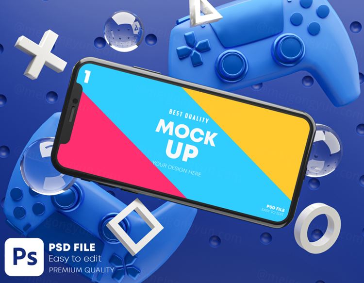 图穷联素材库 » 手游APP UI提案展示游戏机手柄场景样机模板 Smartphone Mobile Gaming Mockup