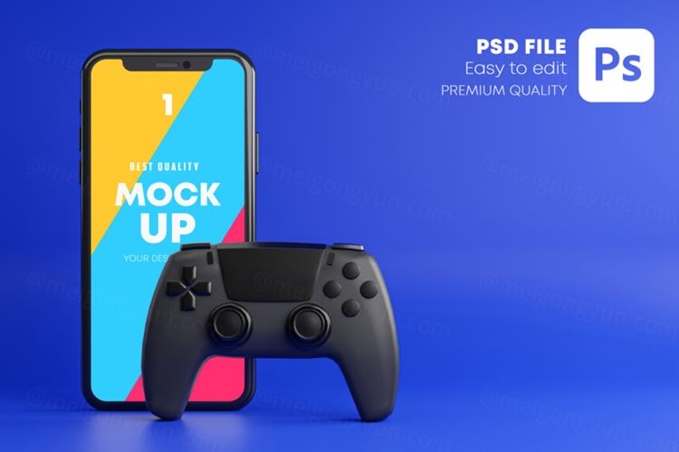 图穷联素材库 » 手游APP UI提案展示游戏机手柄场景样机模板 Smartphone Mobile Gaming Mockup
