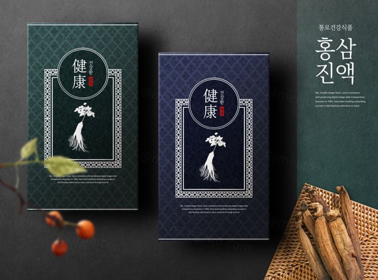 人参高档礼包礼盒健康保健产品传统包装设计PSD模板