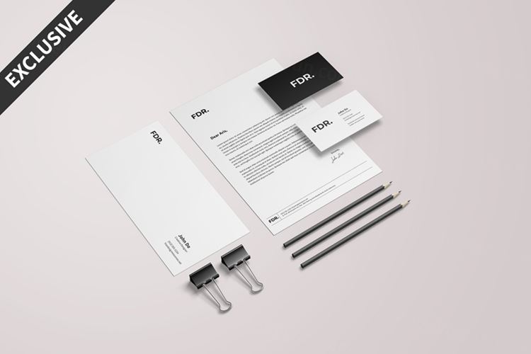 图穷联素材库 » 极简主义文具名片信封品牌提案设计样机模板Free Minimalist Stationery Mockup