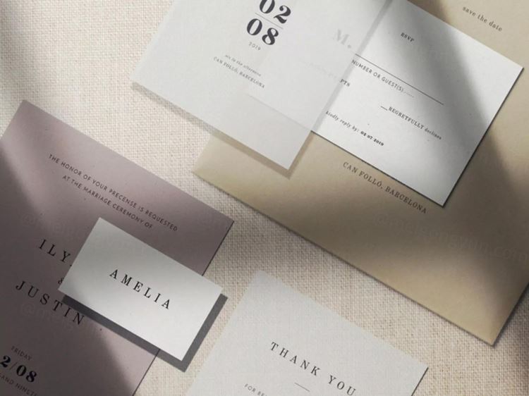 图穷联素材库 » 展示卡片、信笺、信封的优雅纸张卡片产品样机