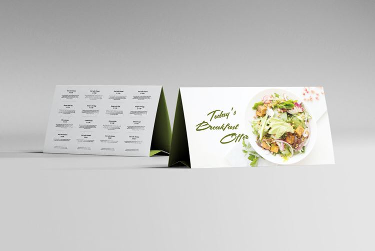 桌面三角形双面菜单设计展示样机PSD模板 Horizontal Table Tent Mockup