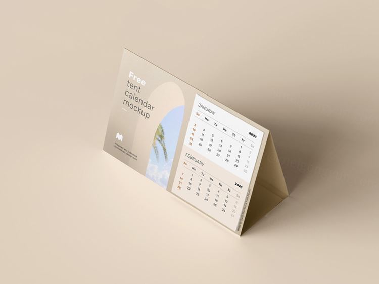 图穷联素材库 » 三角形桌历台历设计提案展示PSD样机模板 Tent Calendar Mockup